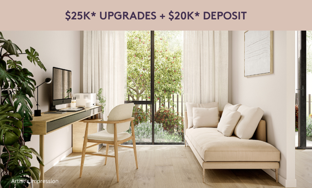Get MORE when you buy a Mirvac Built Townhome + enjoy a $25k* rebate & $20k* deposit giving you more time to save!
